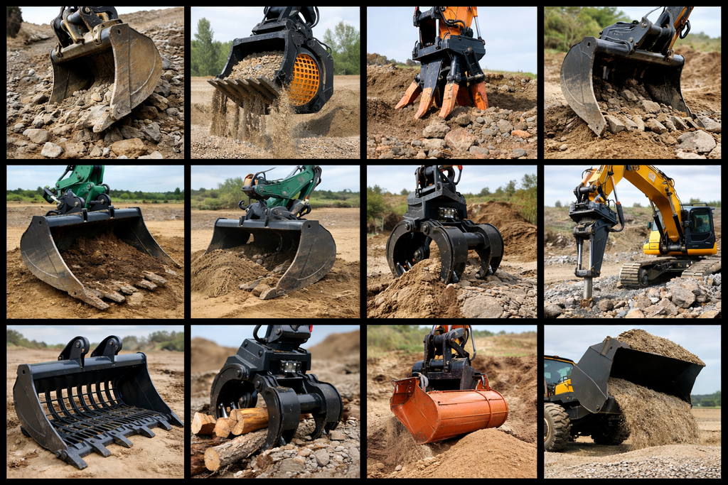 Excavator Buckets: Digging Bucket, Hydraulic Tilt Bucket, Rock Bucket, Grading Bucket, Cable/Trench Bucket, etc.